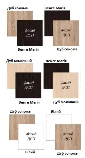 | Колір (відтінок) меблів | Венге темний, Дуб сонома, венге темний, Білий, Дуб молочний |