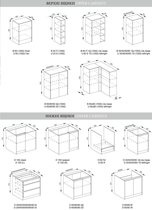 | Тип кухонного гарнітура | стандартний, модульний |