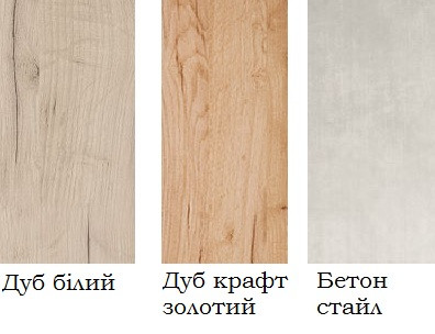 | Колір (відтінок) меблів | Дуб крафт золотий, Бетон |