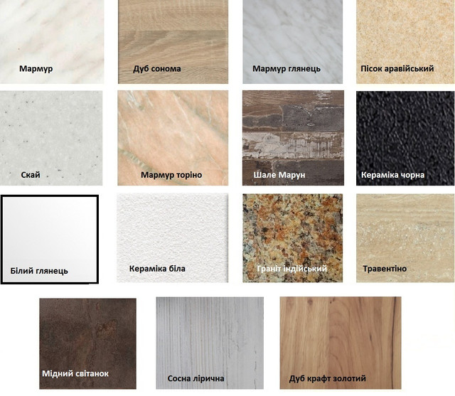 | Колір (відтінок) меблів | Білий, Дуб сонома |